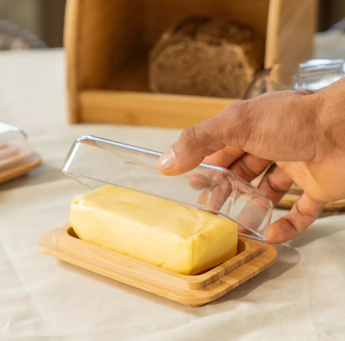 Porta Manteiga Bambu Tampa Acrílica Sense Ou