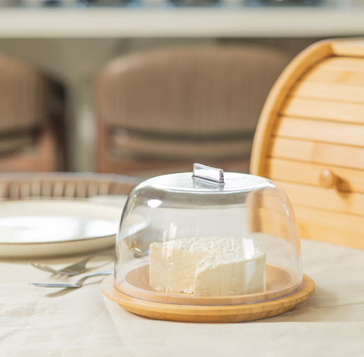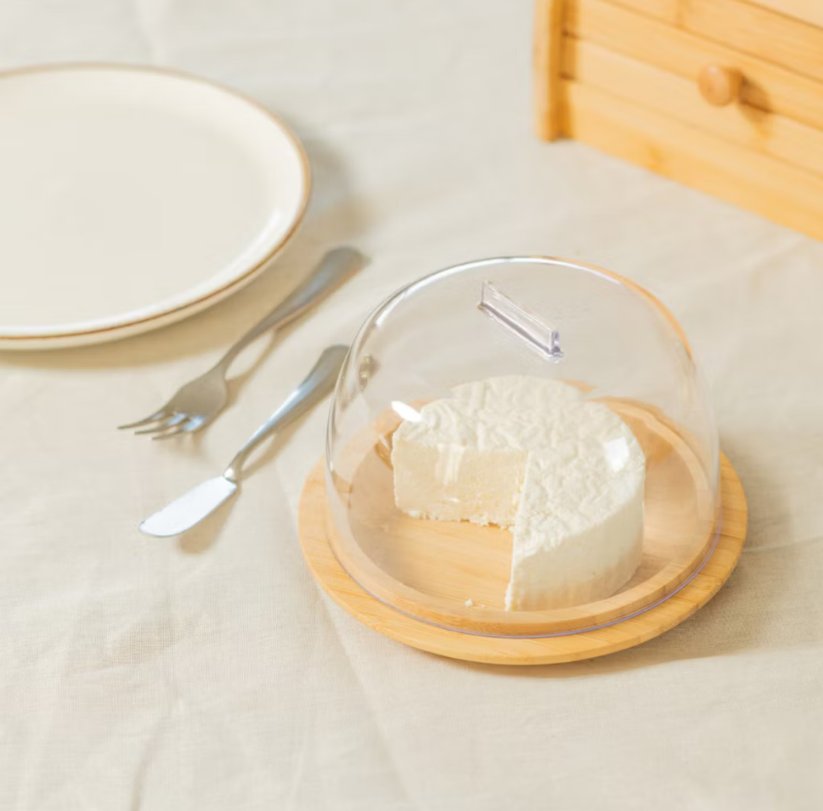 Porta Queijo Minas Ricota Queijeira em Bambu Com Tampa